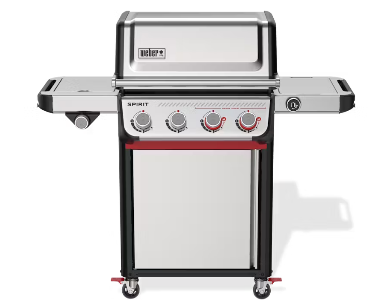Готовьте еду, которая будет вкуснее, чем когда-либо, с новым четырехгорелочным газовым грилем из нержавеющей стали Spirit SP-435 с Sear Zone и боковой горелкой.